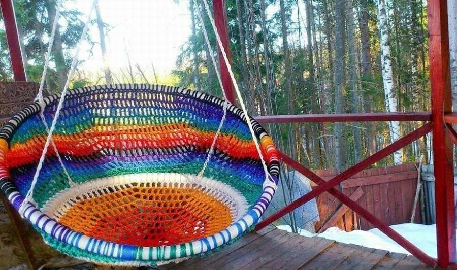 Яркий и эффектный вязаный гамак-кресло можно изготовить своими руками