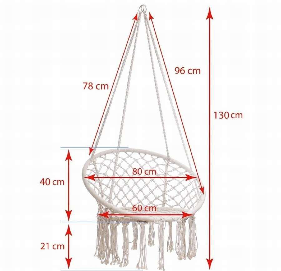 Можно сплести вот такой простой гамак, пользуясь данной схемой размеров, а узор для плетения выбираем по своему вкусу или используем тот, который представлен на фото – простая сетка. Для основы – два обруча, который должны хорошо выдерживать вес человека в нем отдыхающего.