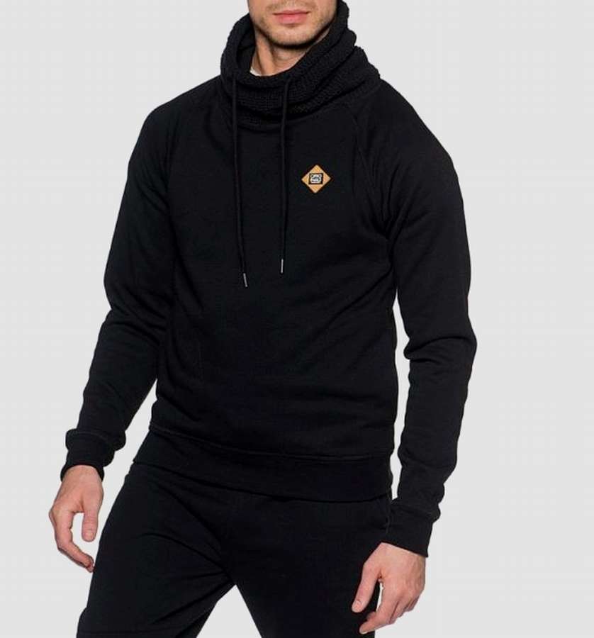 Мужская толстовка реглан из футера с воротником хомут прекрасно комбинируется с любой одеждой – классическими или спортивными брюками или джинсами. Здесь использован черный цвет, самый универсальный, но цвет может быть каким угодно.