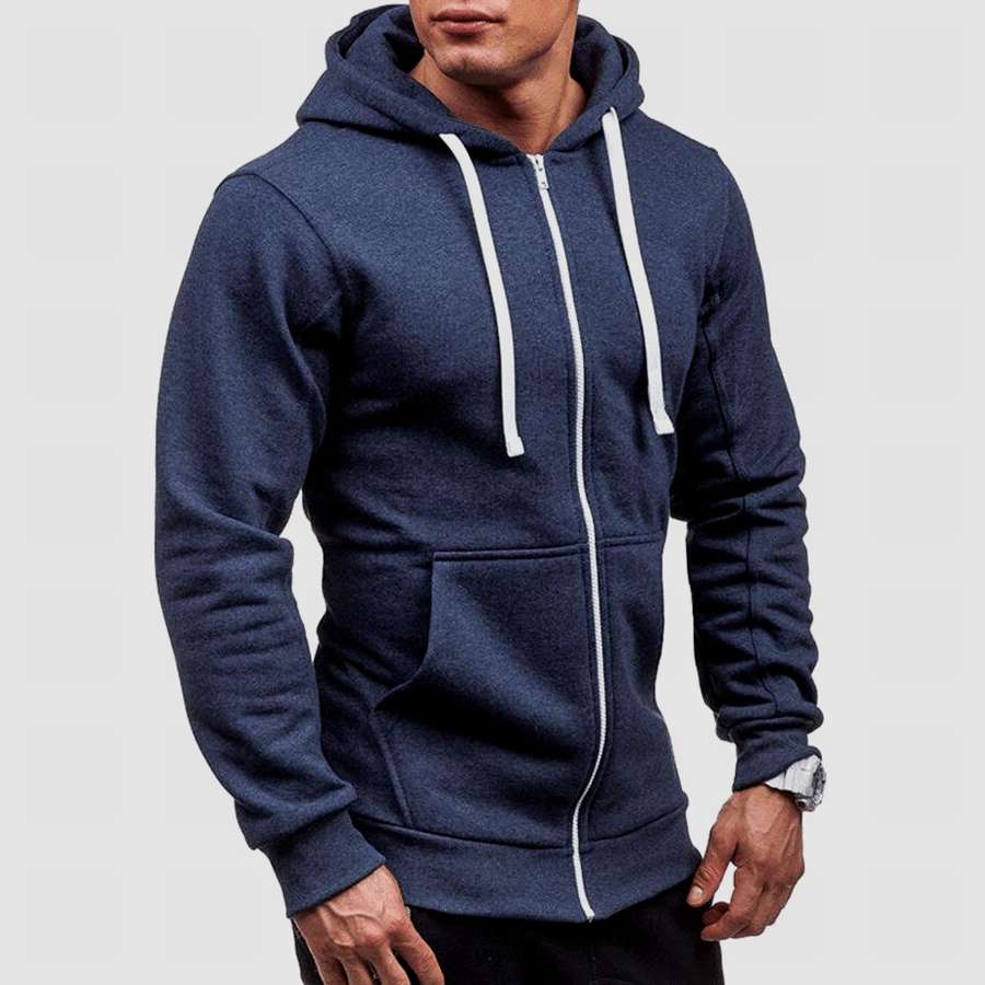 Это тоже называется толстовка мужская с капюшоном на молнии. Но кроме молнии и капюшона весь остальной фасон сугубо современный: и рукава, и само изделие приталенное, никаких поясов и резинок. В общем, модный дизайнерский вариант.