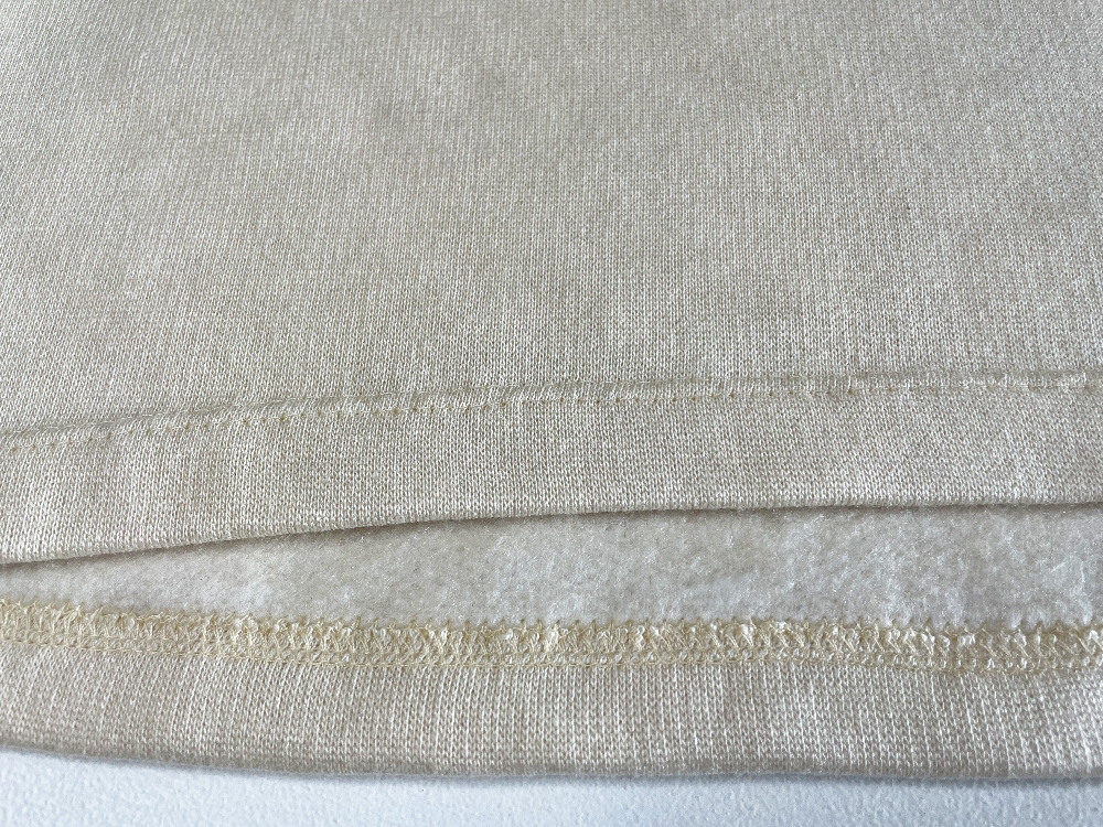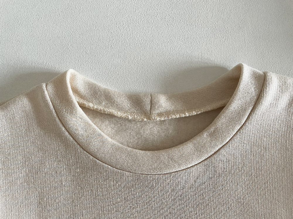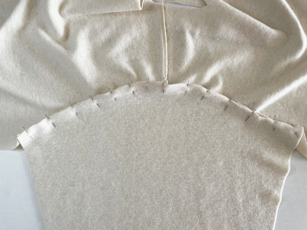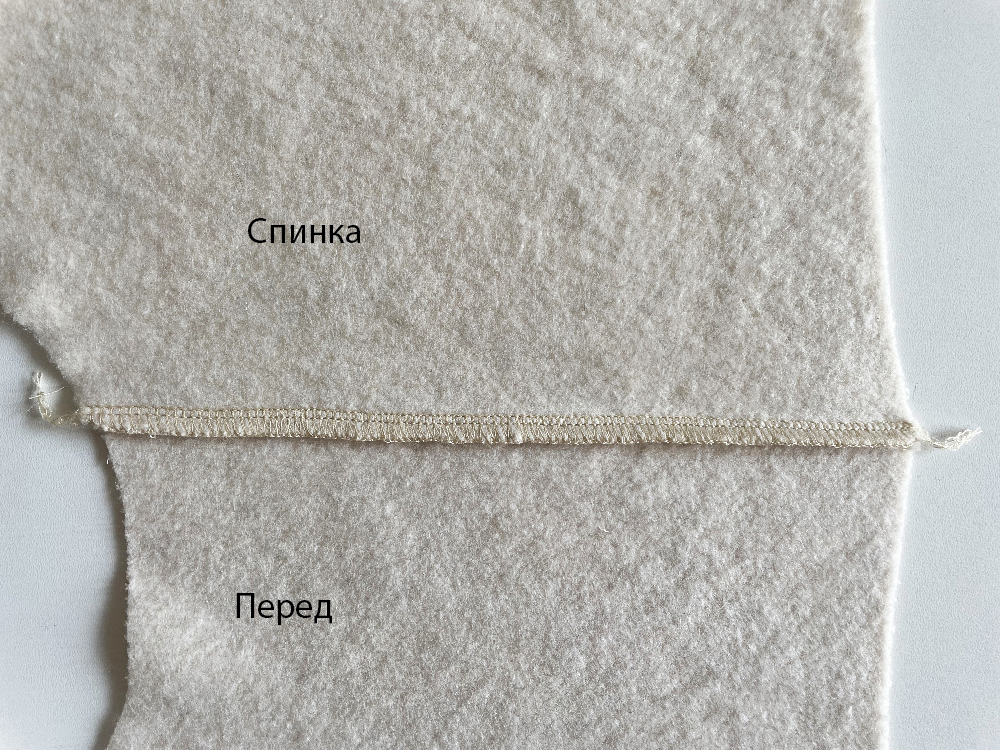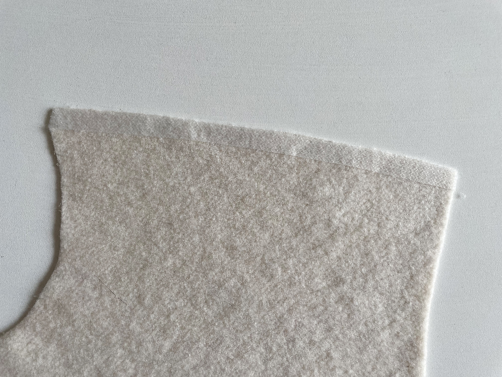 Деталь переда свитшота. Плечевой срез проклеиваем долевой нитепрошивной кромкой.