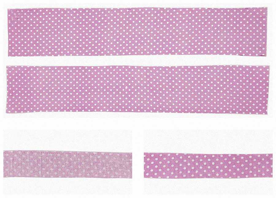 - вырежьте полоску ткани длиной 10 сантиметров и шириной 7,3 сантиметра и сложите её вдоль, завернув оба края к середине;