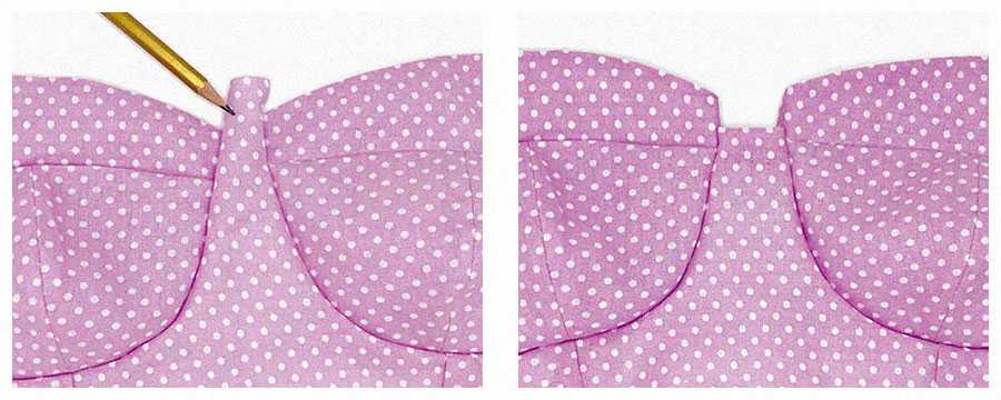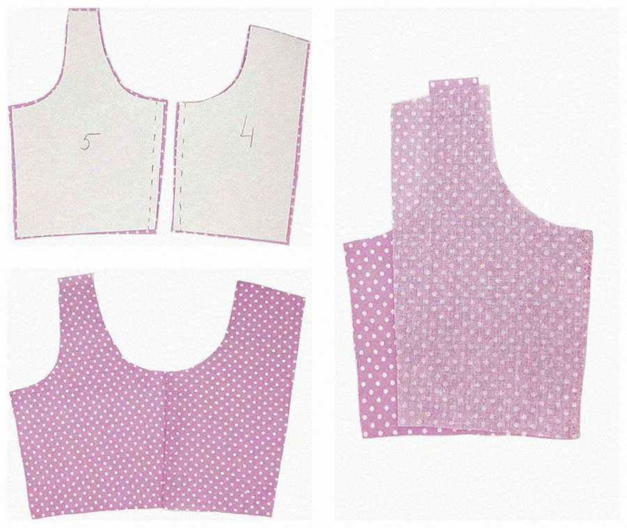 - Косточки вставляем между двумя слоями ткани. Чашечки для груди закрепляем вручную. Можно сделать внутри дополнительные кармашки и туда вставлять подушечки для придания объёма.
