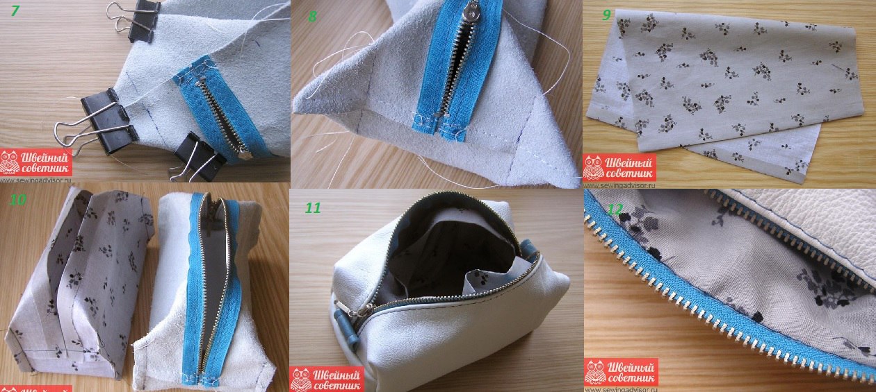 Подкладка играет особую роль в изделии. С ее помощью основной материал не разваливается, и косметичка способна прослужить гораздо больший срок. Она обычно пришивается после молнии.