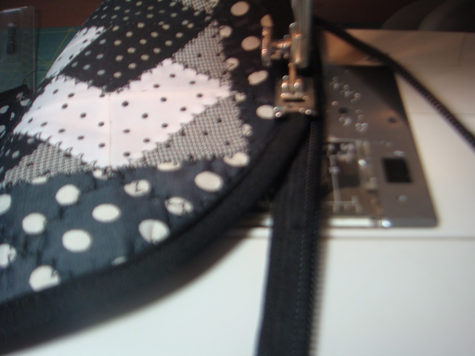 - Потом отверстие застрачивается при помощи швейной машинки.