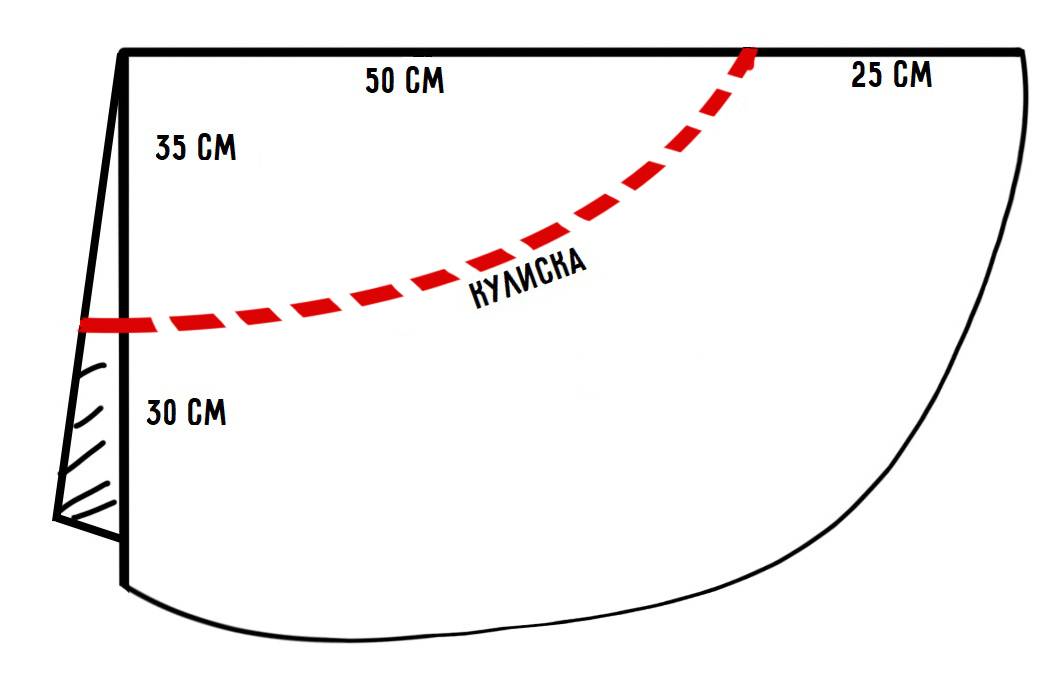 - косая бейка – 0,6 м; 0,75 м; 0,75 м; 0,16 м или полоски ткани аналогичной длины шириной 3 см;