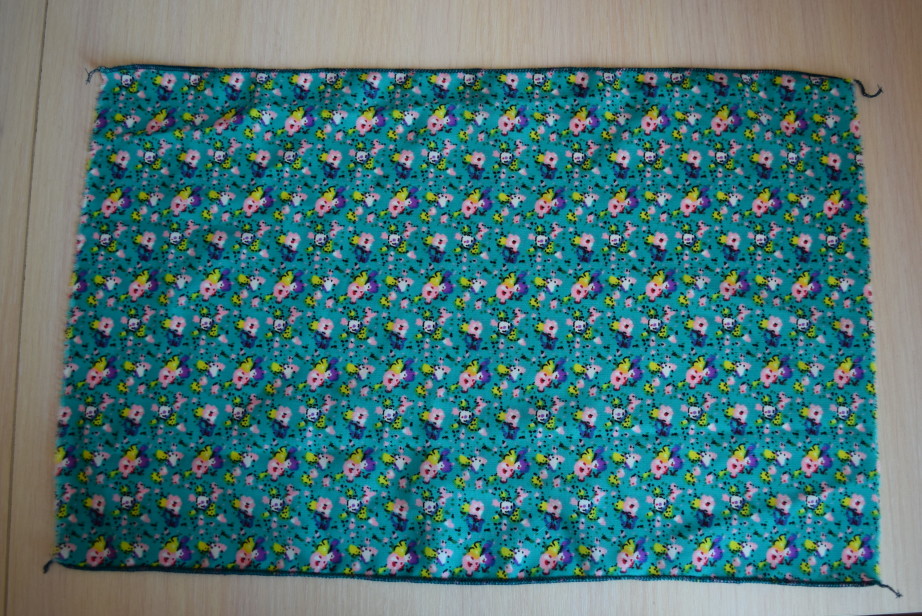 Затем обрабатываем края большого прямоугольника на оверлоке, у кого нет специальной машинки — пользуемся строчкой зигзаг, которая есть на всех стачивающих швейных машинках.
