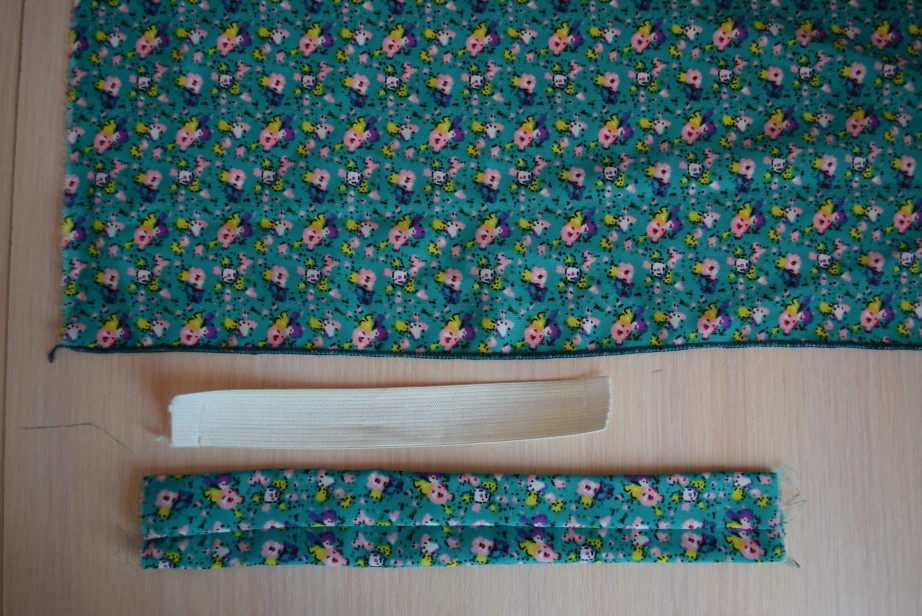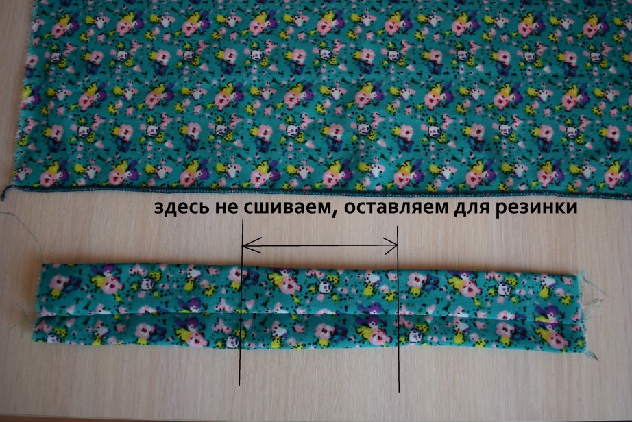 Короткие края необходимо присобрать таким образом, чтобы их ширина соответствовала ширине резинки.