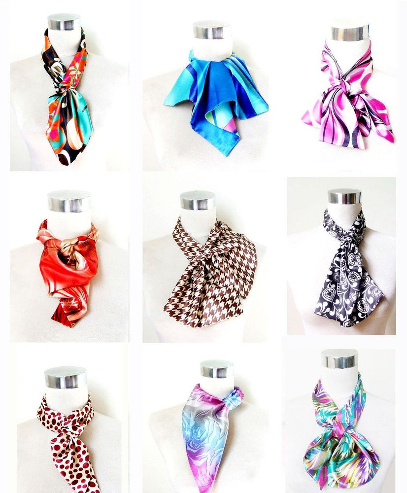 При строгом дресс-коде, когда неуместны яркие привлекающие внимание элементы, аксессуар привнесет женственности и мягкости. Косынка на шею одинаково выигрышно смотрится на дамах любого возраста и типа фигуры, а грамотно подобранная расцветка оттенит глаза, придаст свежести лицу, создаст нужное настроение