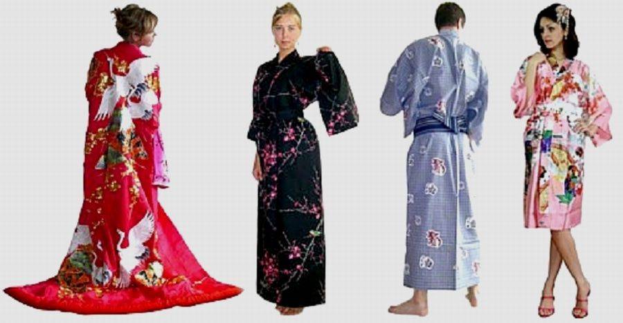 Великолепно выглядящие кимоно разнообразных расцветок шьются по одной простой выкройке.