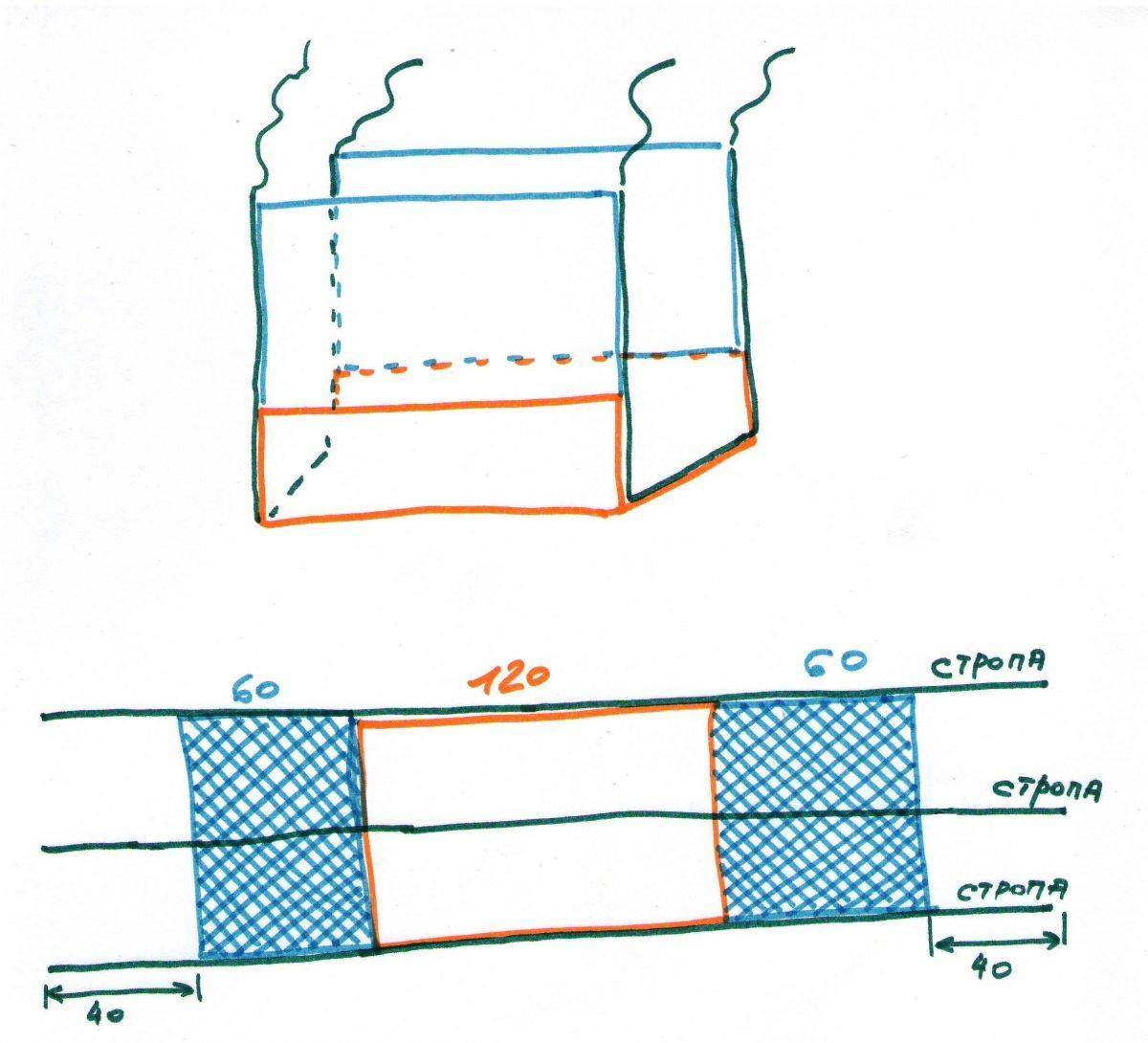 Стропы с тканью прошивают несколько раз. Нагрузка падает именно на места соединения этих элементов.