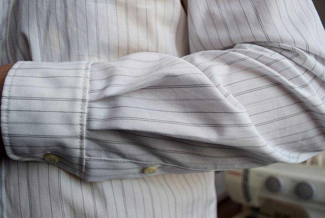 После того, как манжета пришита, проверьте, как она смотрится на руке и убедитесь, что всё выглядит аккуратно и ровно. При необходимости подравнивайте манжету и устраняйте небольшие неровности.
