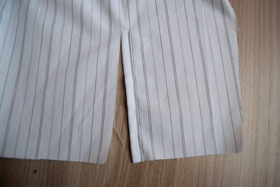 Пришейте края прямоугольников манжет круглым швом или оверлоком, чтобы они не распустились. Затем отгладьте швы утюгом.