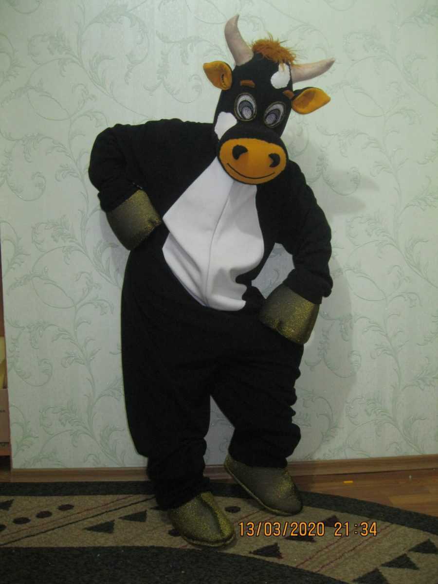 Костюм быка не так-то просто купить, поэтому мы сделаем костюм быка на Новый год самостоятельно. Подойдет любая одежда, которую мы украсим пятнистым мехом или флисом.