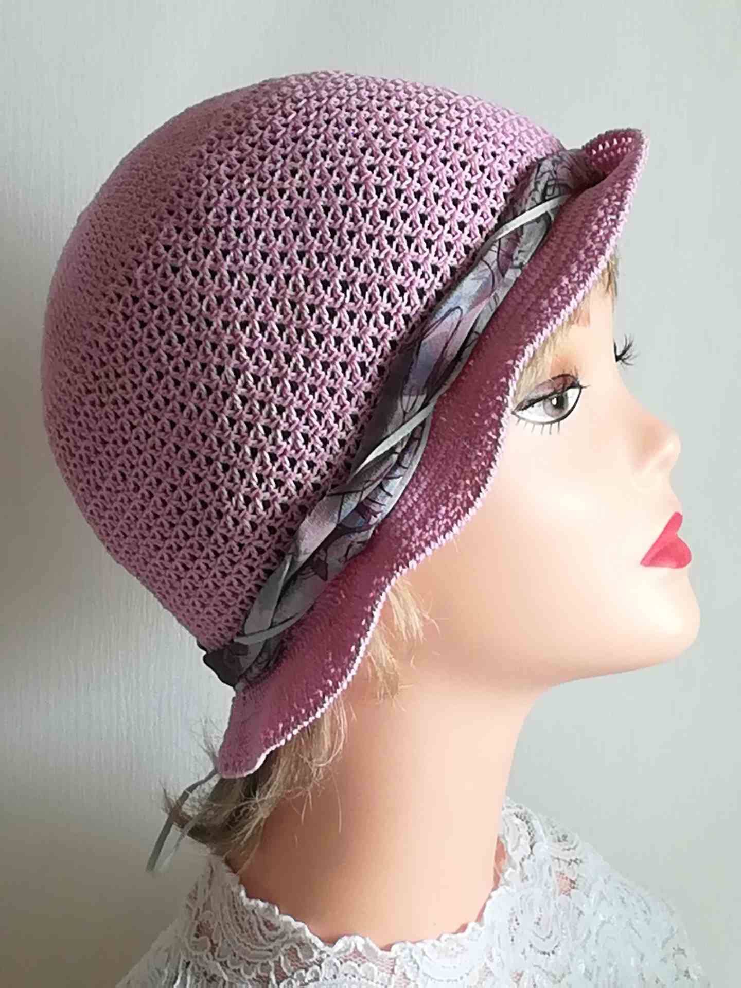 Можно сделать головной убор не только белого цвета, но и любого другого. Любителям розового наверняка понравится вот такая шляпка.