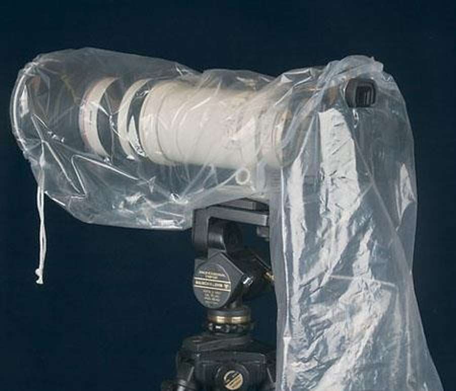 Полиэтиленовый мешок или кусок прозрачного полиэтилена всегда пригодится для защиты фотоаппарата от погодных условий. Как минимум, нужно всегда иметь его под рукой, а еще лучше сшить дождевик для фотоаппарата. Рукав с затяжками – это просто.