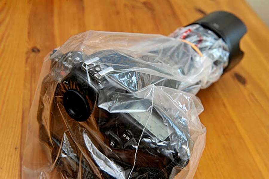 Полиэтиленовый пакет в качестве дождевика для фотоаппарата должен быть достаточно просторным, чтобы защитить фотокамеру любой величины.