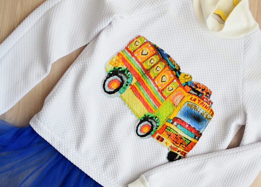 Кстати, если остаются обрезки и жалко выкидывать есть идея сделать яркую аппликацию. Вырезаю понравившийся рисунок, проклеиваю его с обратной стороны клеевой ткань для жесткости, если ткань плотная можно этого и не делать. Пришиваю на швейной машинке по контуру. Веселый принт от Stella jean на белом свитшоте своими руками готов!