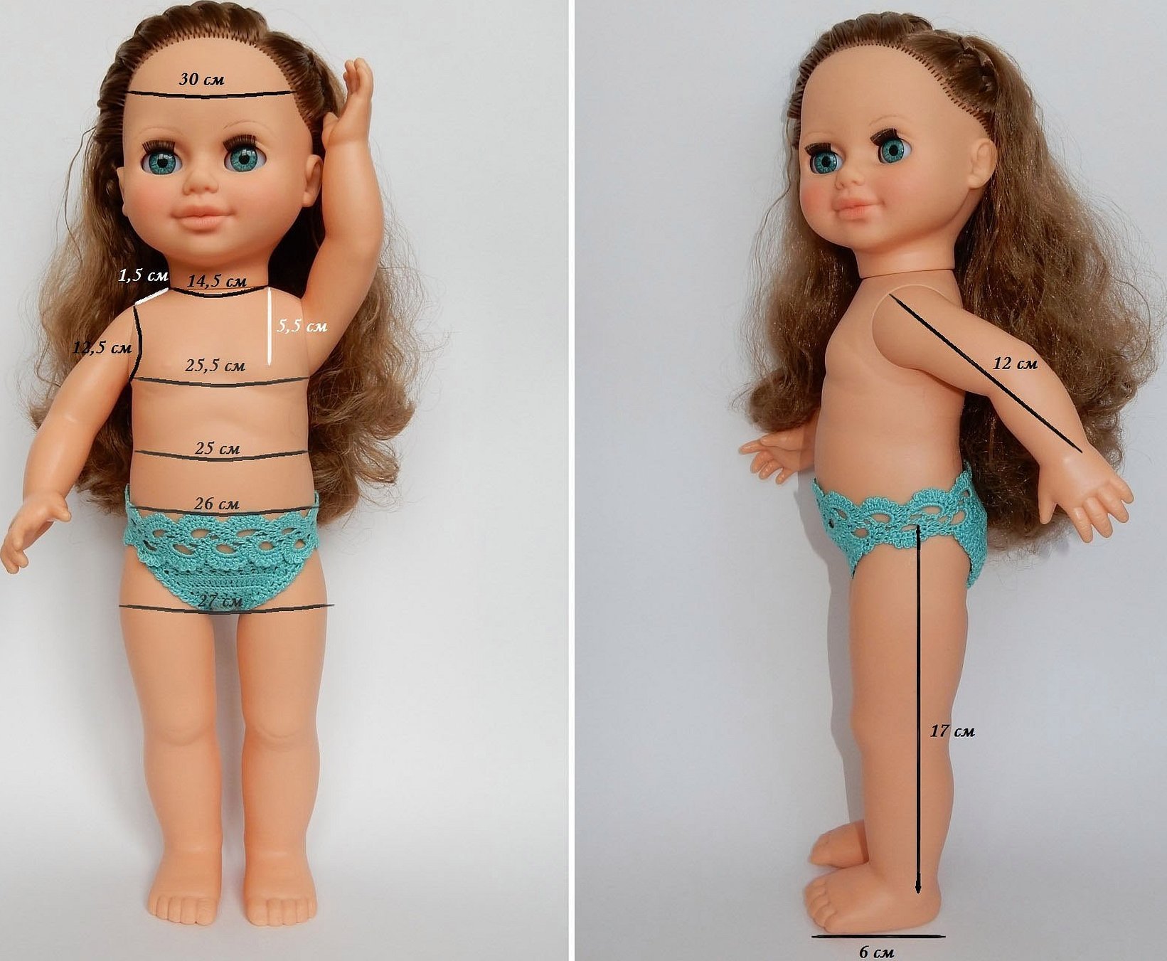 Перед тем, как сшить платье для куклы, платье должно быть просчитано до мелочей. Сперва нужно произвести замеры куклы. Для данной модели нужны следующие параметры:
