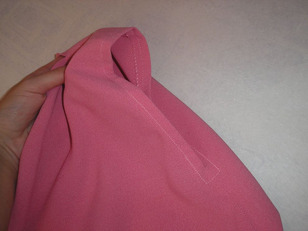 Есть и второй вариант вшивания ластовицы. Если заготовка платья села на вас тесновато, рекомендуем им воспользоваться. Кокетку придётся распороть и перекроить за счёт выпадов ткани. Рукав после всех манипуляций выглядит так, с вшитой ластовицей.