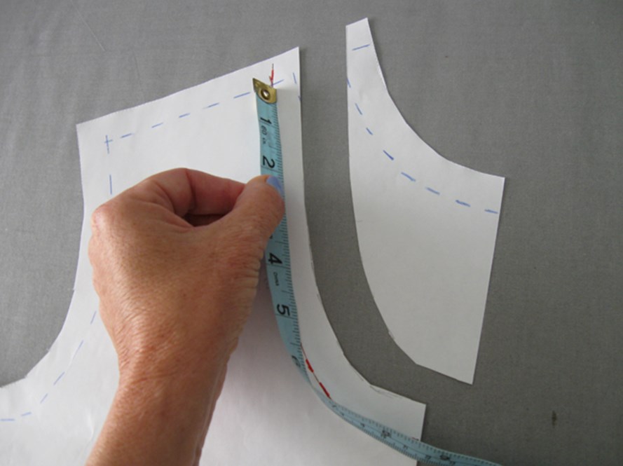 - от точки лифа замеряется 4-6 см и опускается прямая до линии проймы;