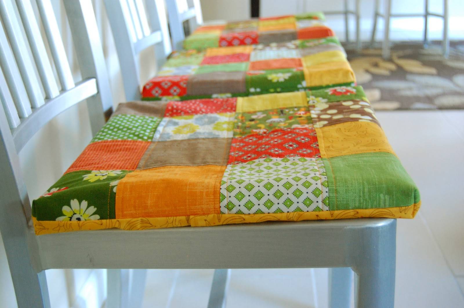 Для крепления сидушки на табурете также удобно использовать резиночки, пришитые по углам изделия.