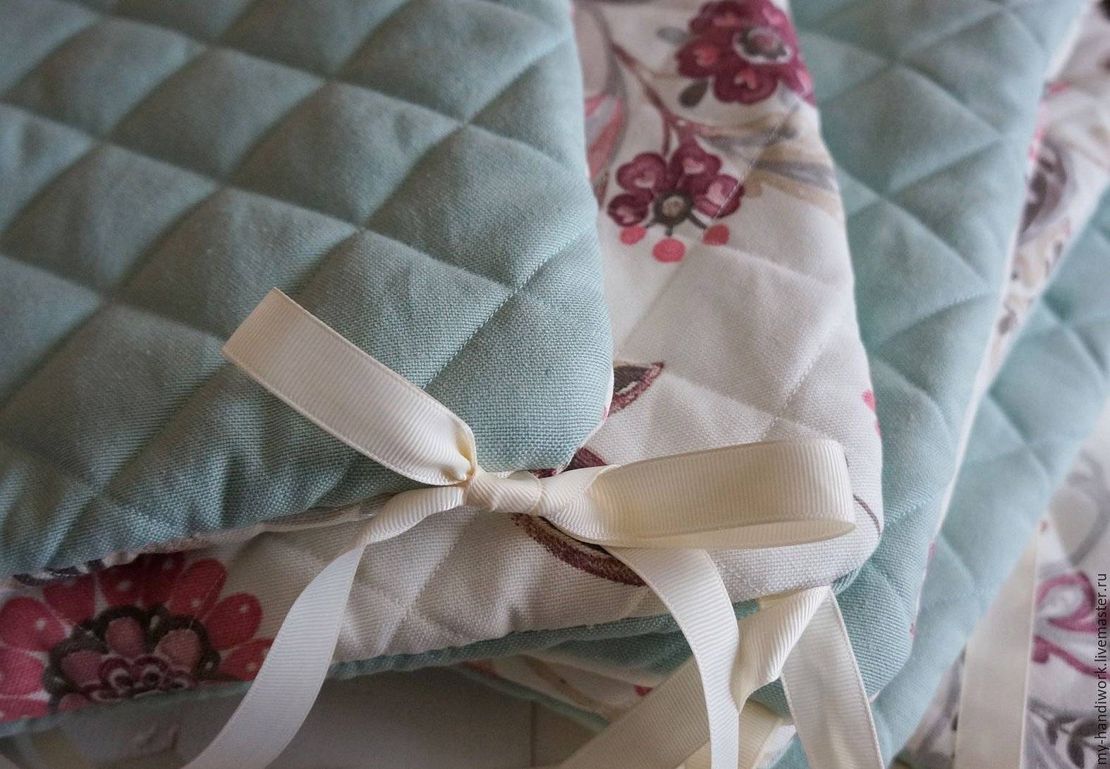 Их можно изготовить из той же ткани, что и для шитья самого чехла. Если же изделие оформлено лентами или косой бейкой, завязки можно сделать из них.