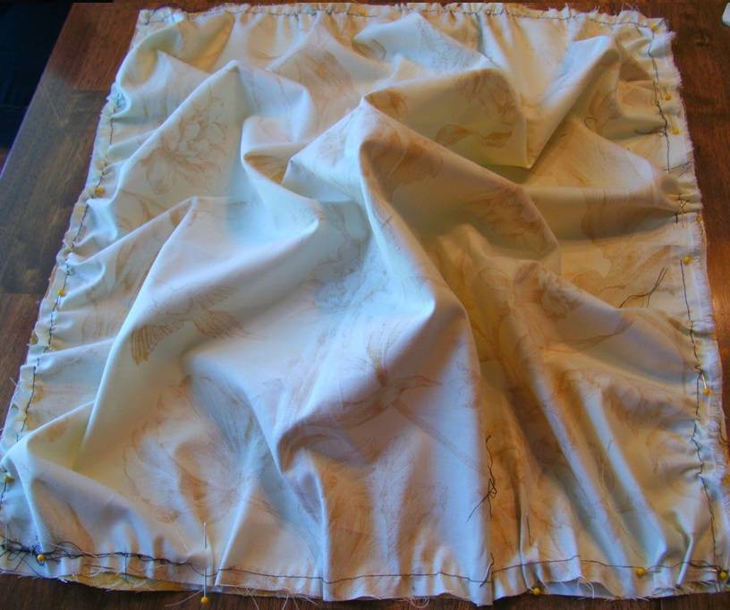 - Нужно сформировать 2 детали, которые будут идентичными формам и размерам подушки. Не стоит забывать про припуск на швы (+4 см).