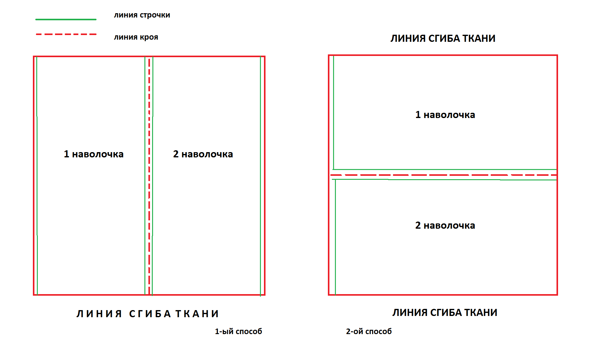 - 175 x 220 см. Этот прямоугольник нужно разделить на три или четыре одинаковых части (в зависимости от того, наволочки какого размера вам необходимы).