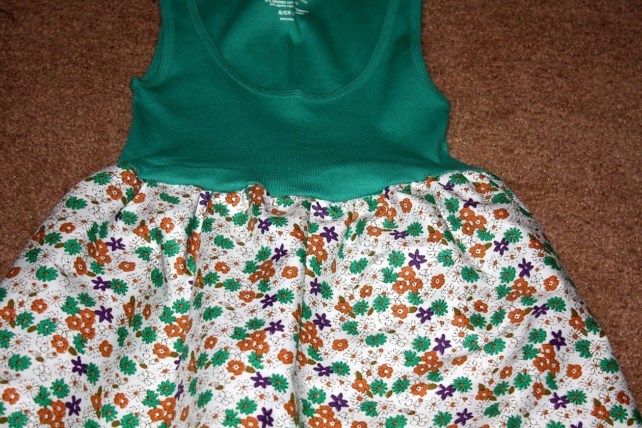 Сделав подгибку и прострочив спинку резинкой, притачиваем её к переду. Осталось выкроить юбку и обработать низ.