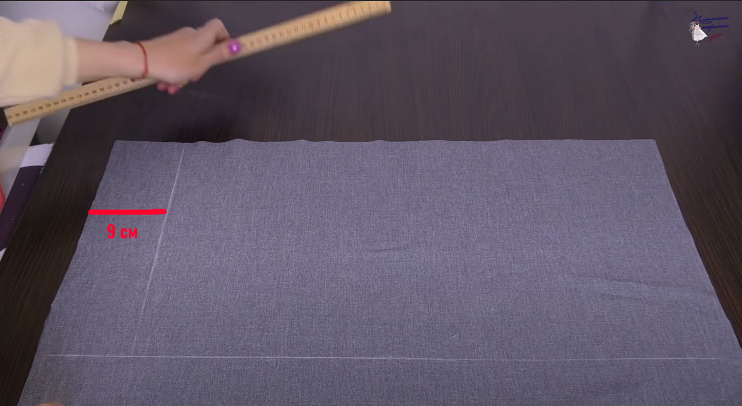 Теперь делаем выемку для попы, она равна 9 см (стандартно для взрослых). Слева отмеряем линию: