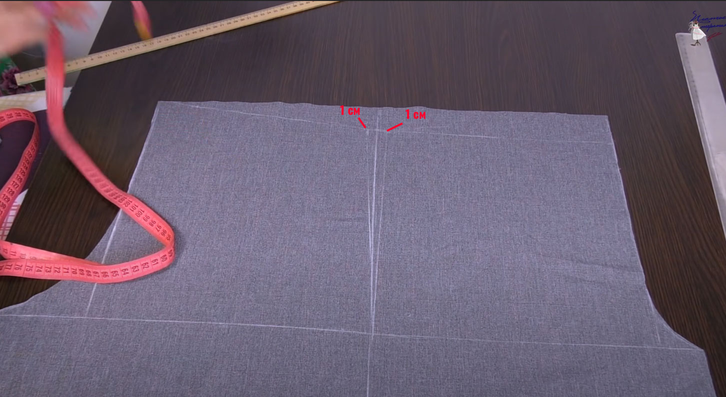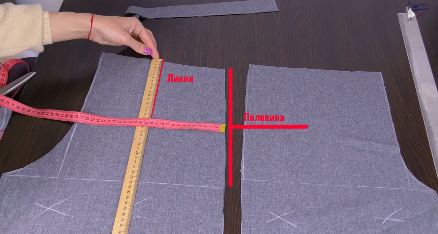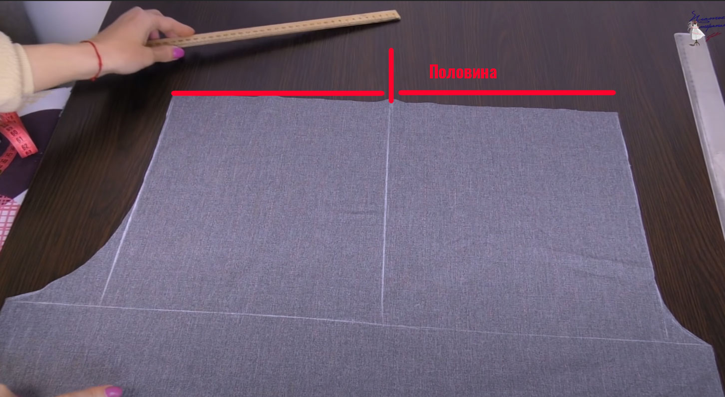 Переходим к добавлению вытачки, отмеряем половину (как на фото) и проводим линию: