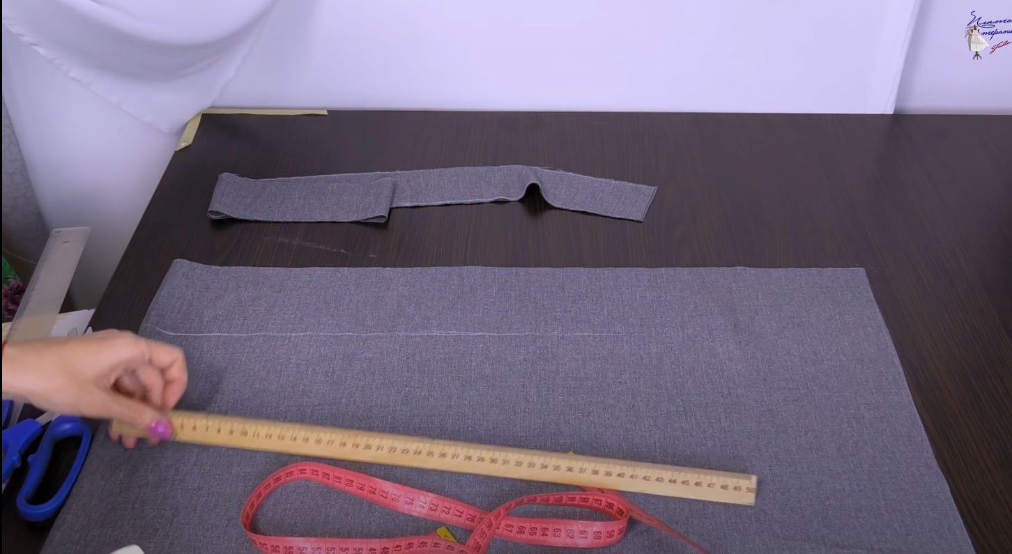 Переходим к нижнему манжету: отмеряем 10 см, чертим полоску и отрезаем:
