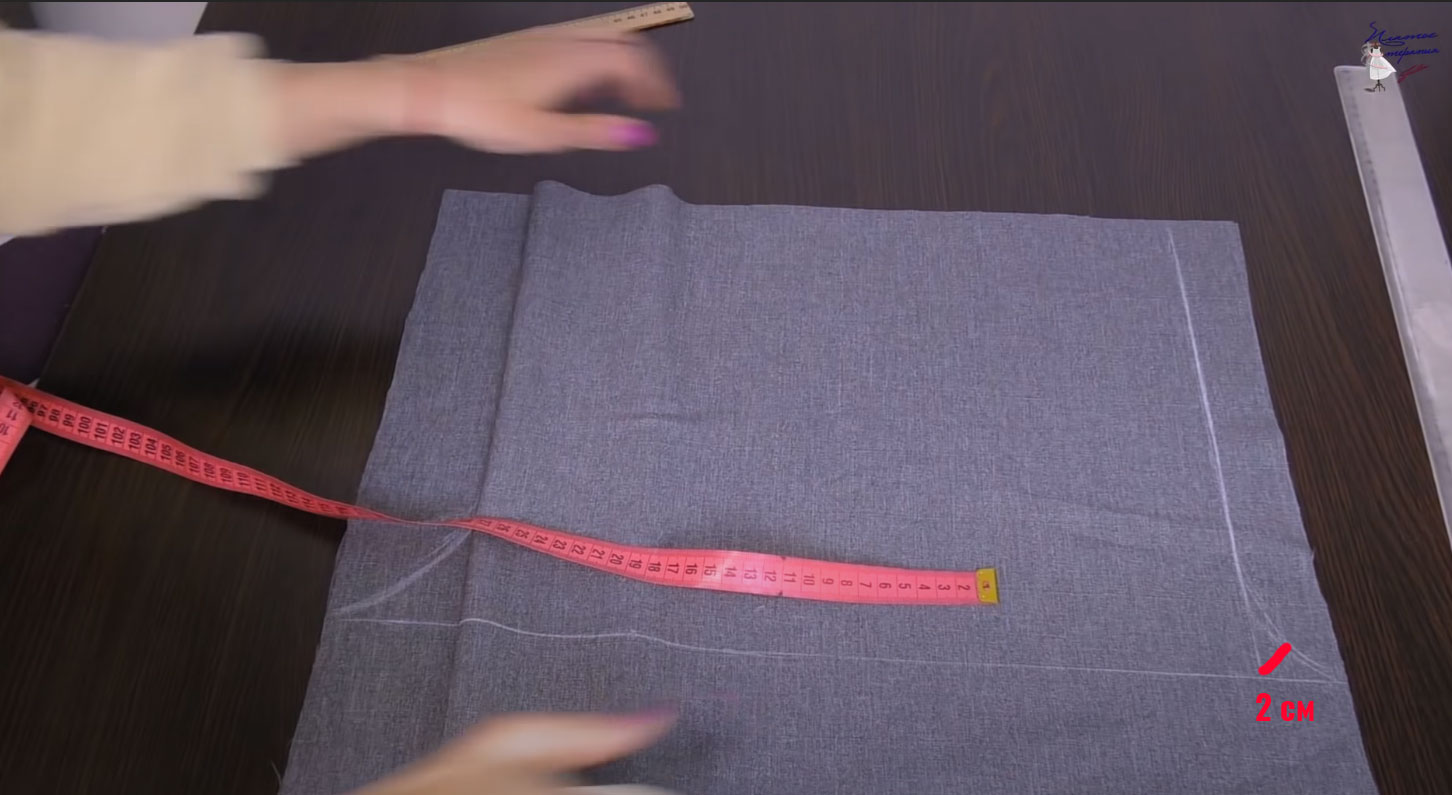 С противоположной стороны отмеряем от нижнего угла метку 2 см под углом 45 градусов и округляем как на фото: