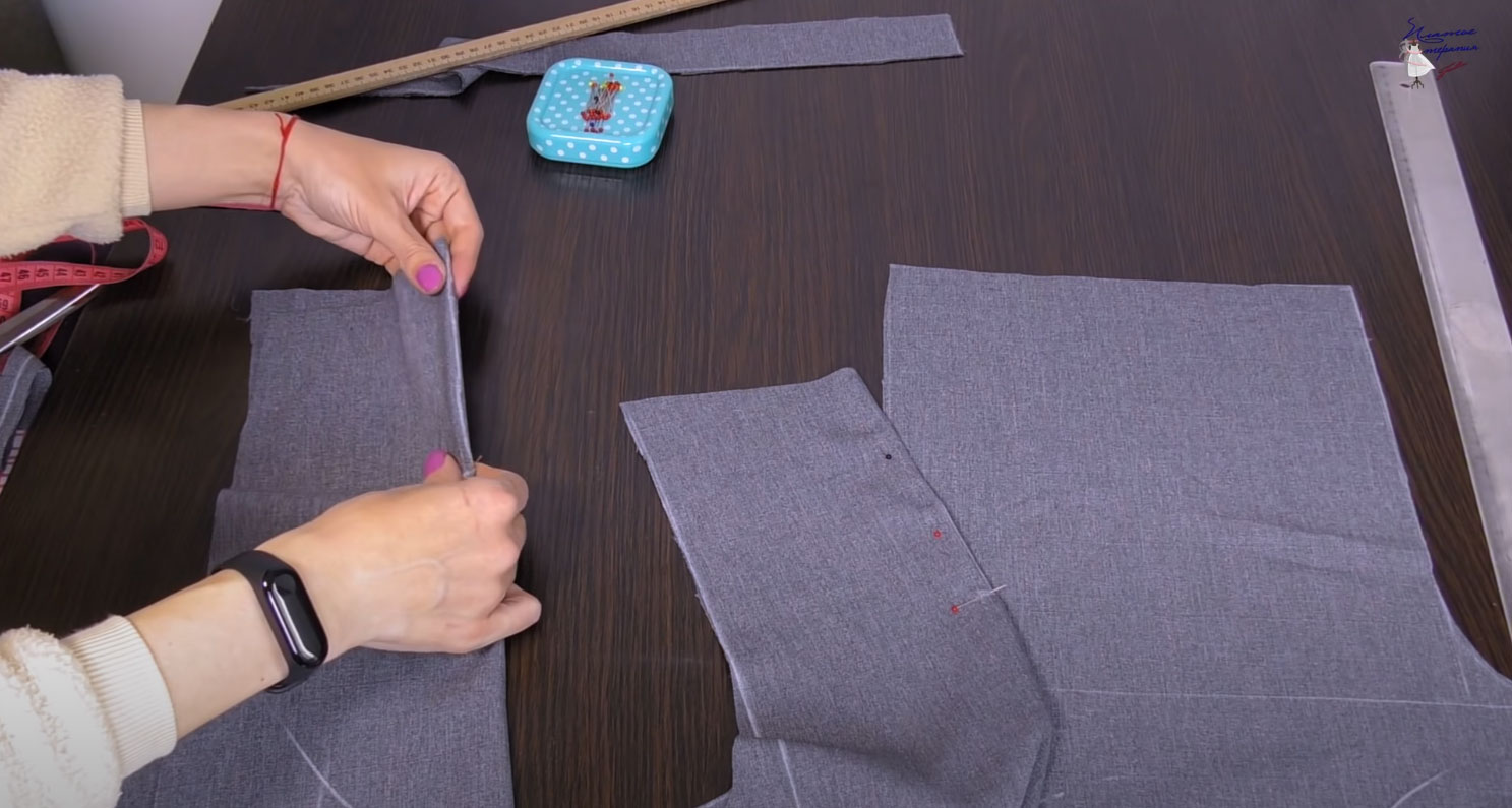 - Далее необходимо сметать части и выполнить примерку. Если все подходит, можете шить дальше.