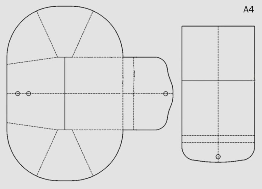 - Прежде всего, вам потребуется выкройка мужской сумки. Пример таковой находится выше. Просто возьмите и распечатайте ее, после чего вырежьте отдельные элементы.