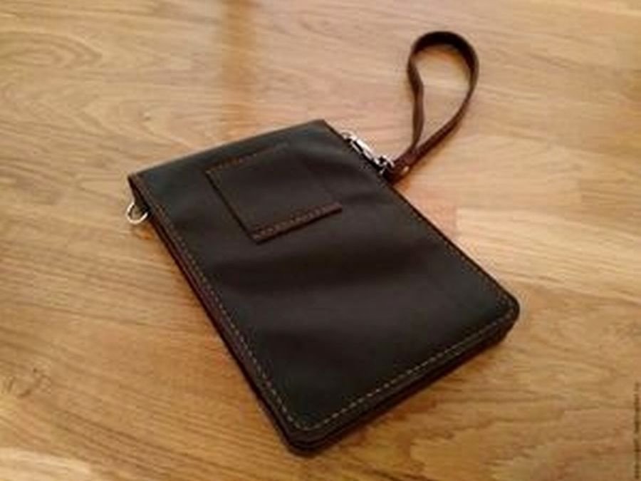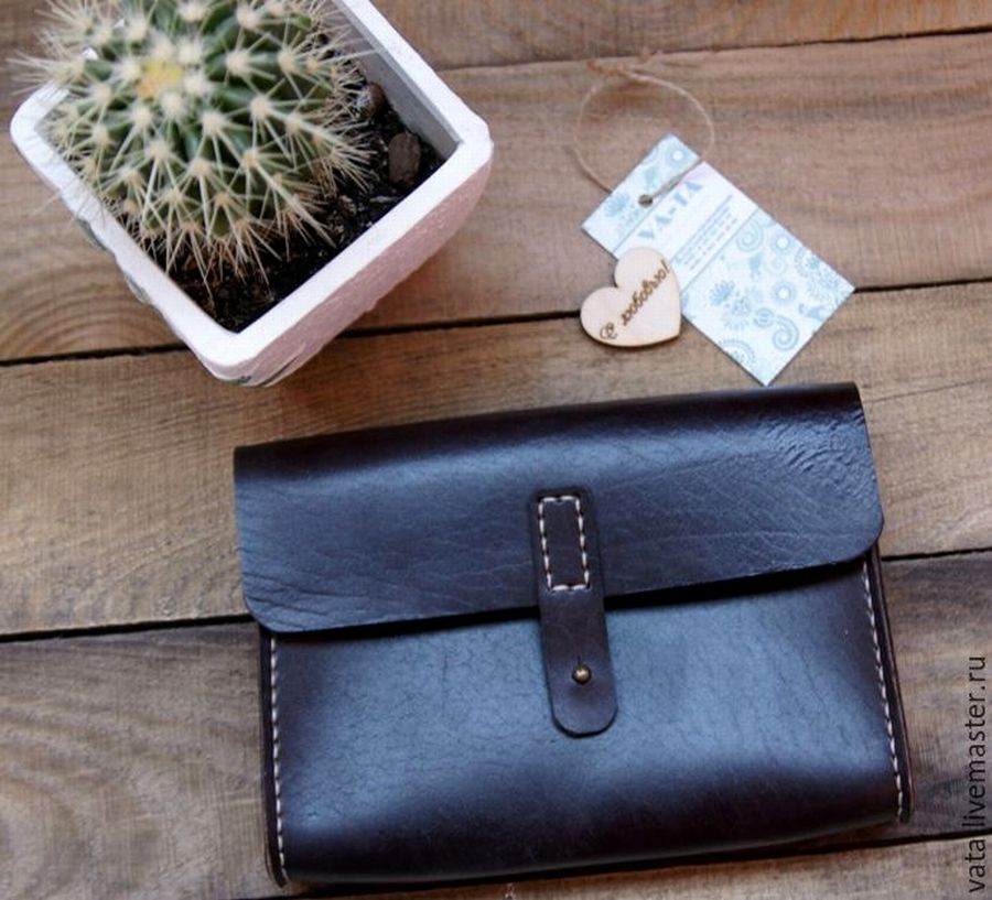Простой клатч из натуральной толстой кожи сшит вручную.