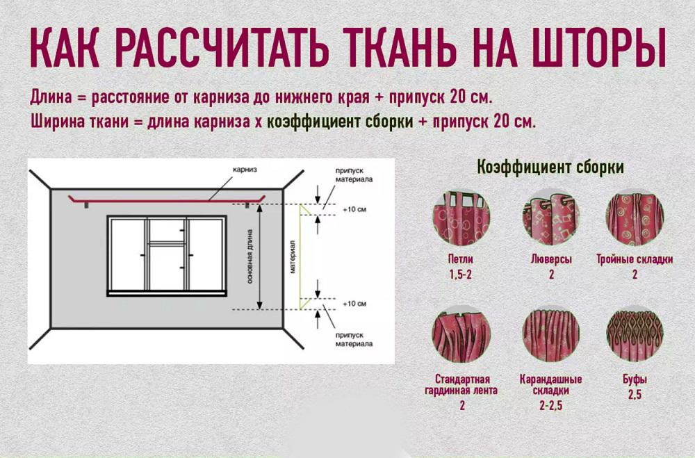 Правила расчета ткани на штору