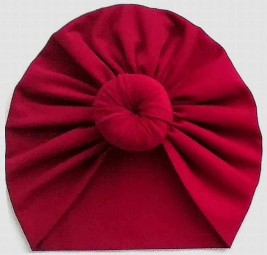 Тюрбан этой маленькой модницы сшит на машинке, это шапочка в виде тюрбана, которая надевается именно как шапочка. То есть отрез материи не приходится складывать и завязывать каждый раз.