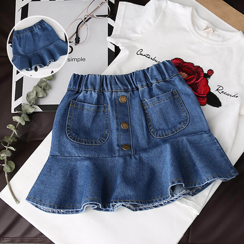 Наверняка в шкафу каждой модницы имеются старые джинсы. Если выбрасывать их жалко, можно сделать обновку для дочки. Модели юбок на девочку довольно разнообразные. Это и короткие варианты, и слегка удлиненные. Нельзя забывать об украшениях. Забавные аппликации обязательно порадуют маленькую модницу.