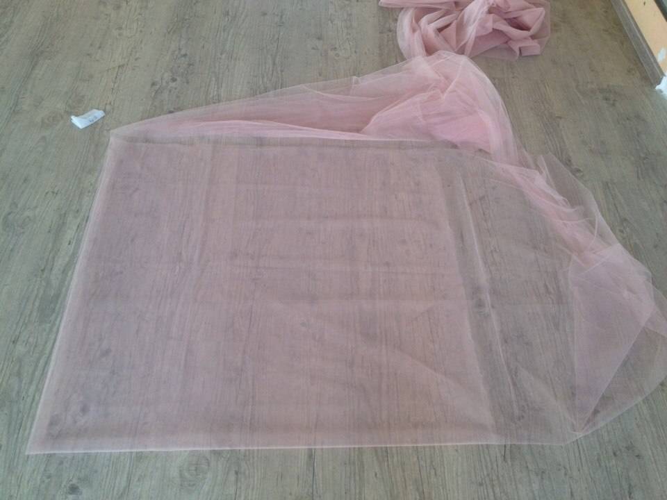 Если такой ткани вы не нашли (у нас городе ее нет), можно использовать обыкновенны фатин (или сетку). В наших магазинах он продается разной жесткости. Мягкий фатин не держит форму, а жесткий – колется. Поэтому лучше выбирать фатин средней жесткости.