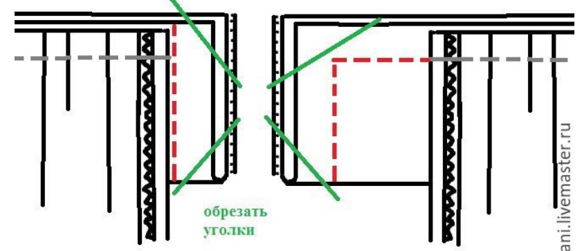 Обрабатываем боковые краешки пояска, срезаем лишние углы.