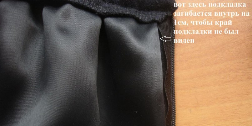 Обратите внимание, краешки подклада следует загнуть внутрь!