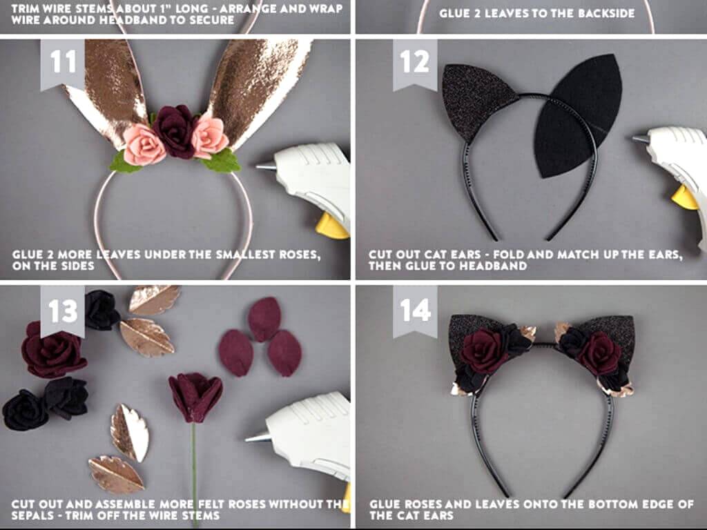 Ушки кошки и зайца из фетра и бумаги