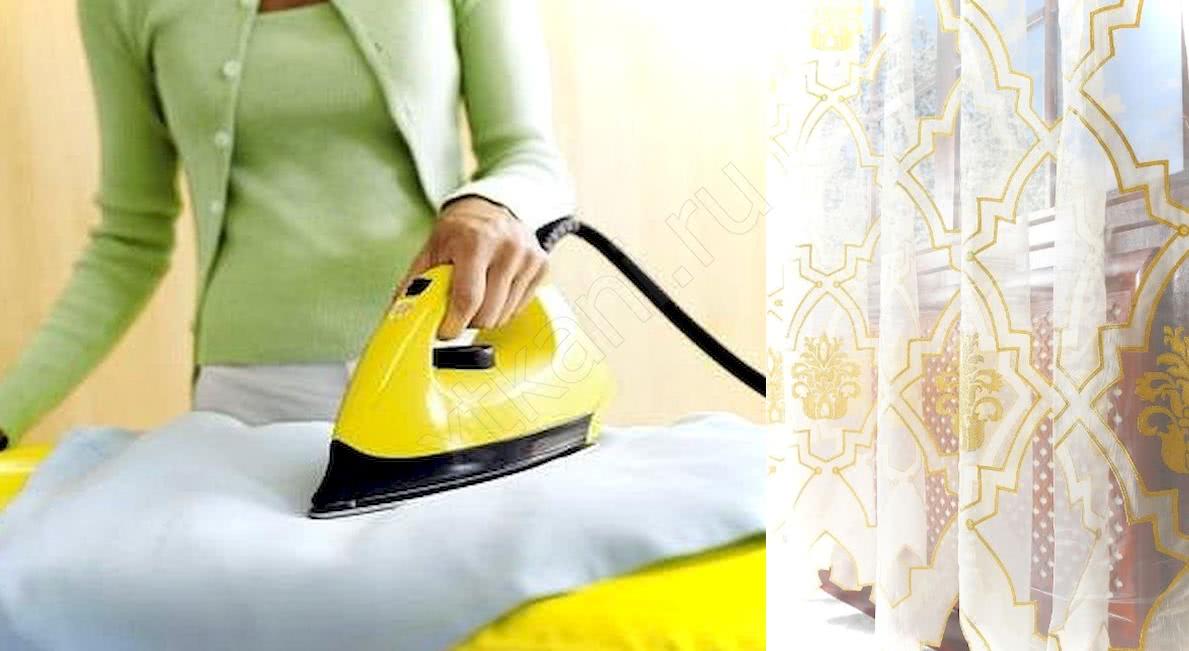 Правильно выстиранная и вовремя развешанная на карнизе занавесь в глажке не нуждается, но если все же возникает необходимость в утюге, то прислушайтесь к следующим советам:
