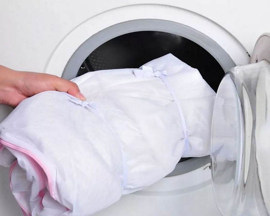 - Сетчатые ткани, тем более кисею, перед стиркой кладите в специальный мешок, который предотвращает случайные зацепки и деформацию волокон.