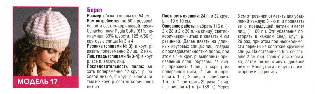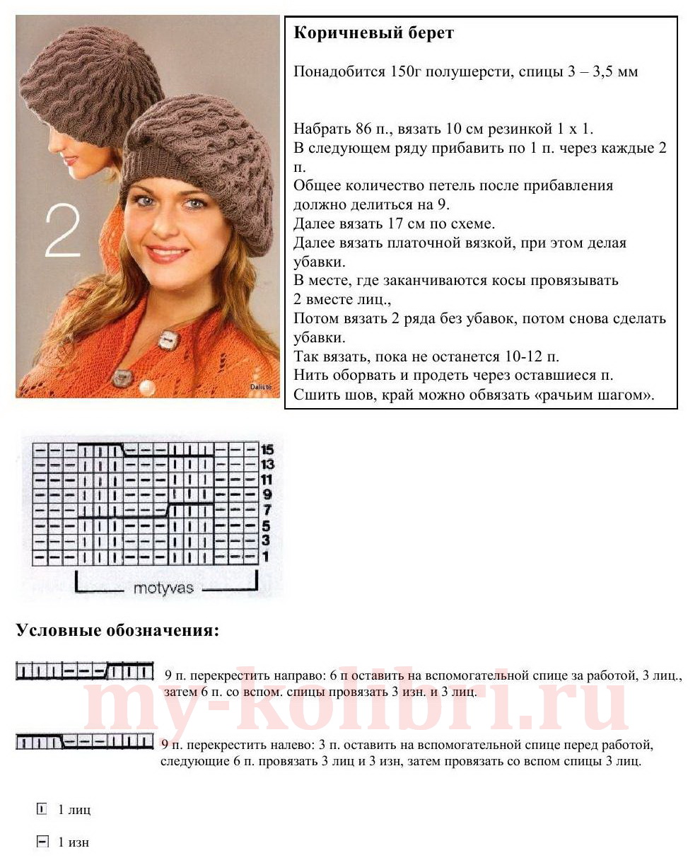 Эта модель выполнена на 4 спицах, но можно связать ее и на 2, но сзади будет шов.