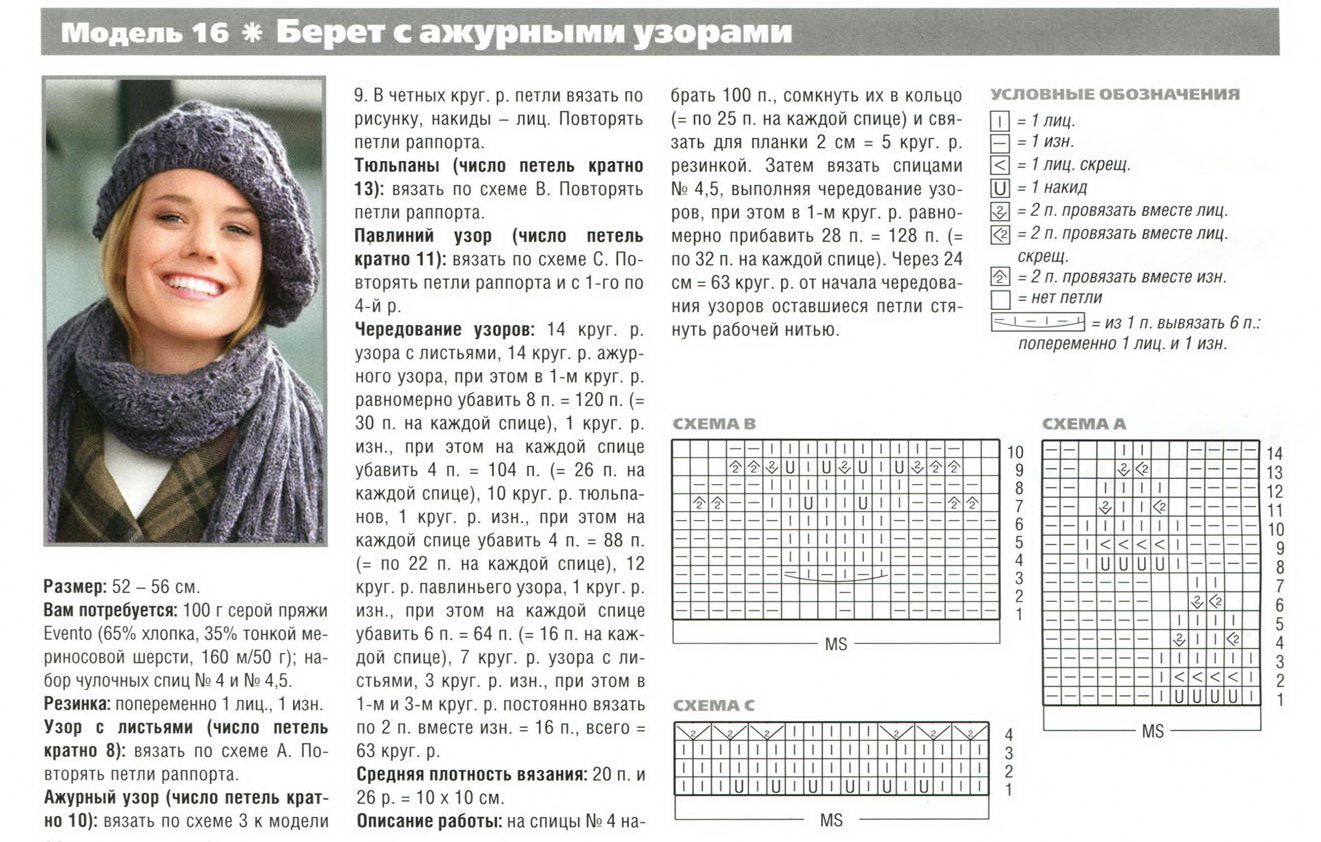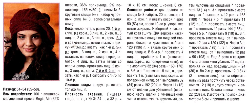 - Для вязания такого берета лучше выбирать пряжу, состоящую наполовину из шерсти.