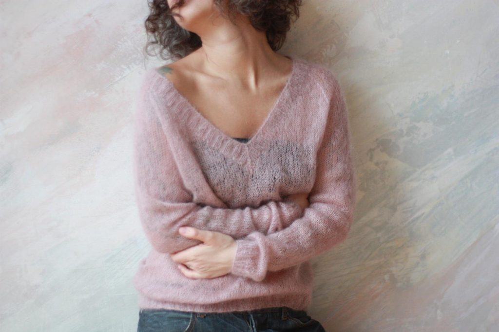- Вязание пуловера из мохера может быть достаточно пушистым, поэтому будьте внимательны к петлям и узору.