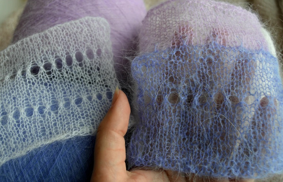 - Kid Mohair – очень тонкая и нежная, из нее хорошо получаются ажурные узоры;